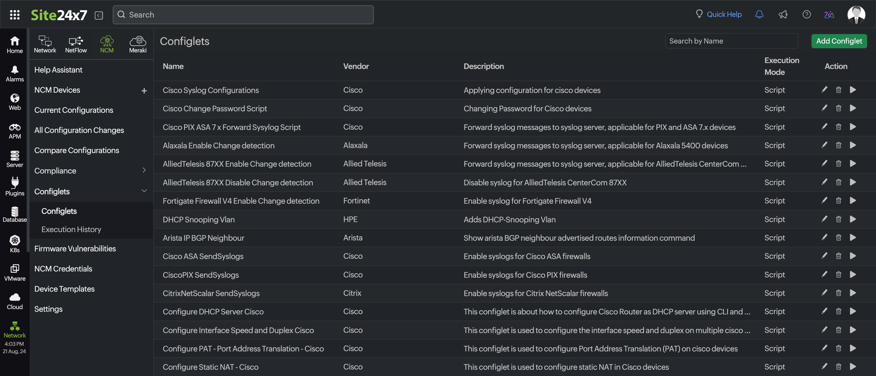 First, let's address the most crucial question: how do network administrators go about creating configuration templates? The easiest approach is to utilize a network configuration management (NCM) tool that enables the creation of configuration templates, such as Site24x7.