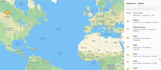 The Meraki Map View showcases the layout of your Meraki organizations and devices, saving you the hassle of searching for each device's location individually.