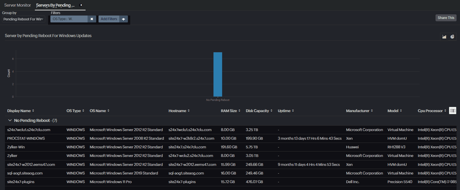 For system administrators and IT decision-makers, being aware of server restarts and servers that require a reboot is imperative. Here's how Site24x7 can address these two pain points: