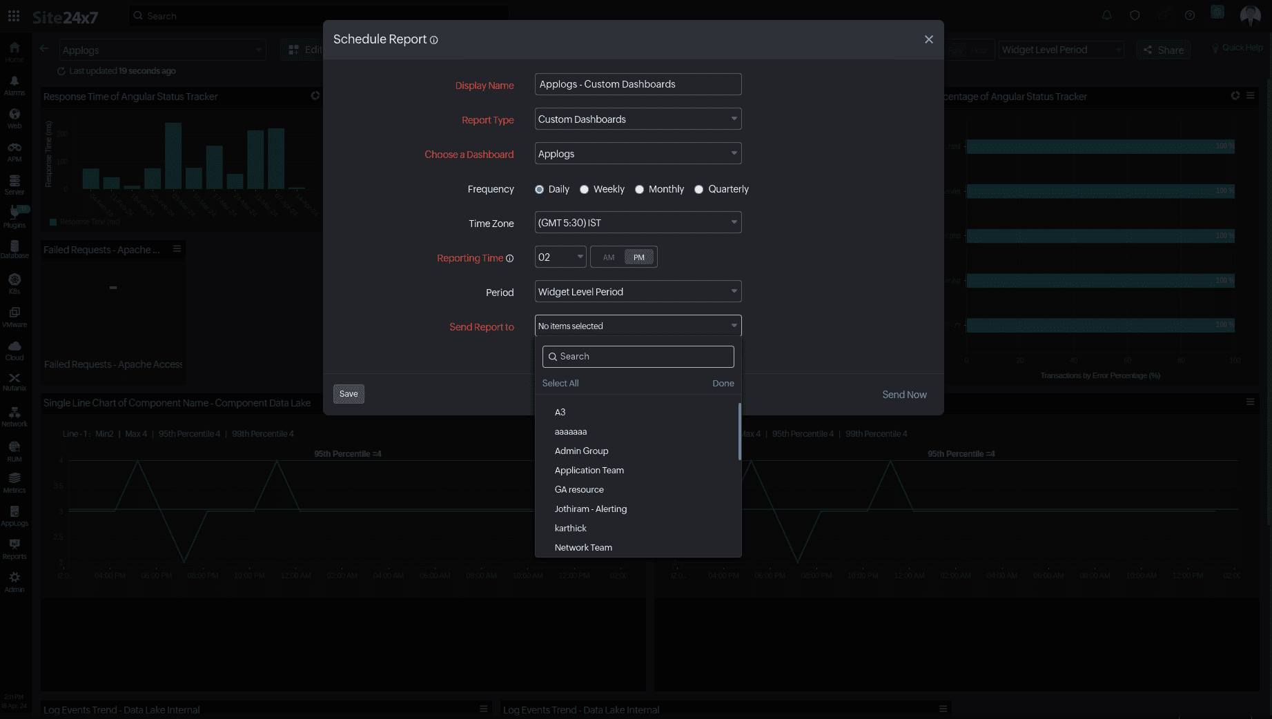 IT managers that oversee complex network infrastructures can utilize Site24x7’s Custom Dashboard to highlight critical metrics such as server response times, network bandwidth usage, and application performance. Using the Widget Grouping and Auto-Arrange features, your dashboard is organized and easy to navigate. The Preview Widgets feature enables you to tweak your widgets for optimal display before finalizing your setup.