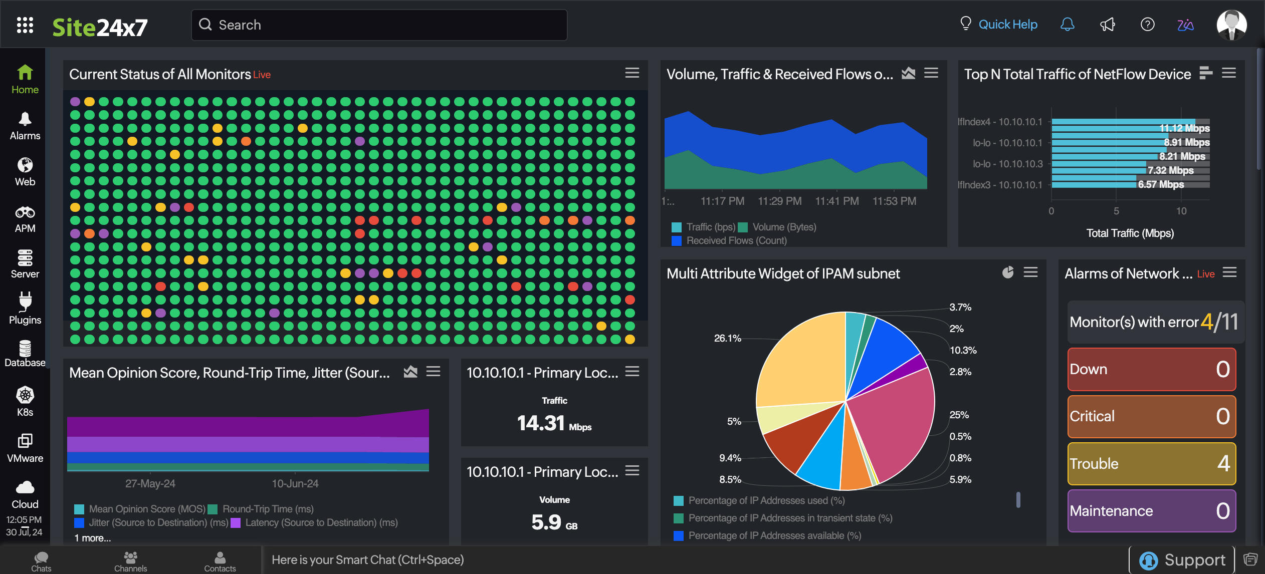 Additionally, Site24x7 can check if your devices are compliant and if there are any firmware vulnerabilities that require patch fixes. Based on this data, IT professionals can make informed decisions about rerouting traffic, upgrading hardware, or adjusting configurations to mitigate the impacts of delays.