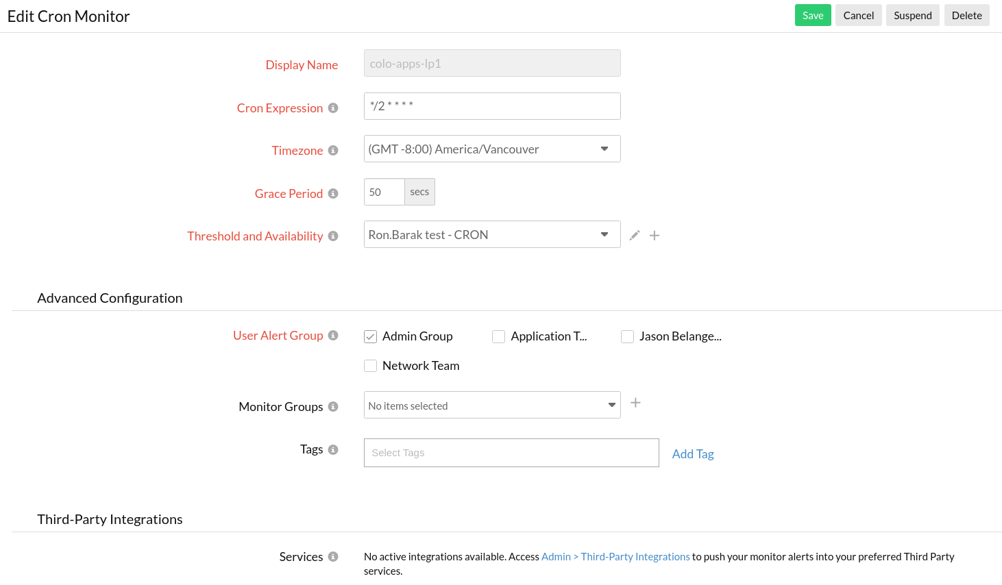 The configuration of the cron monitor is:
