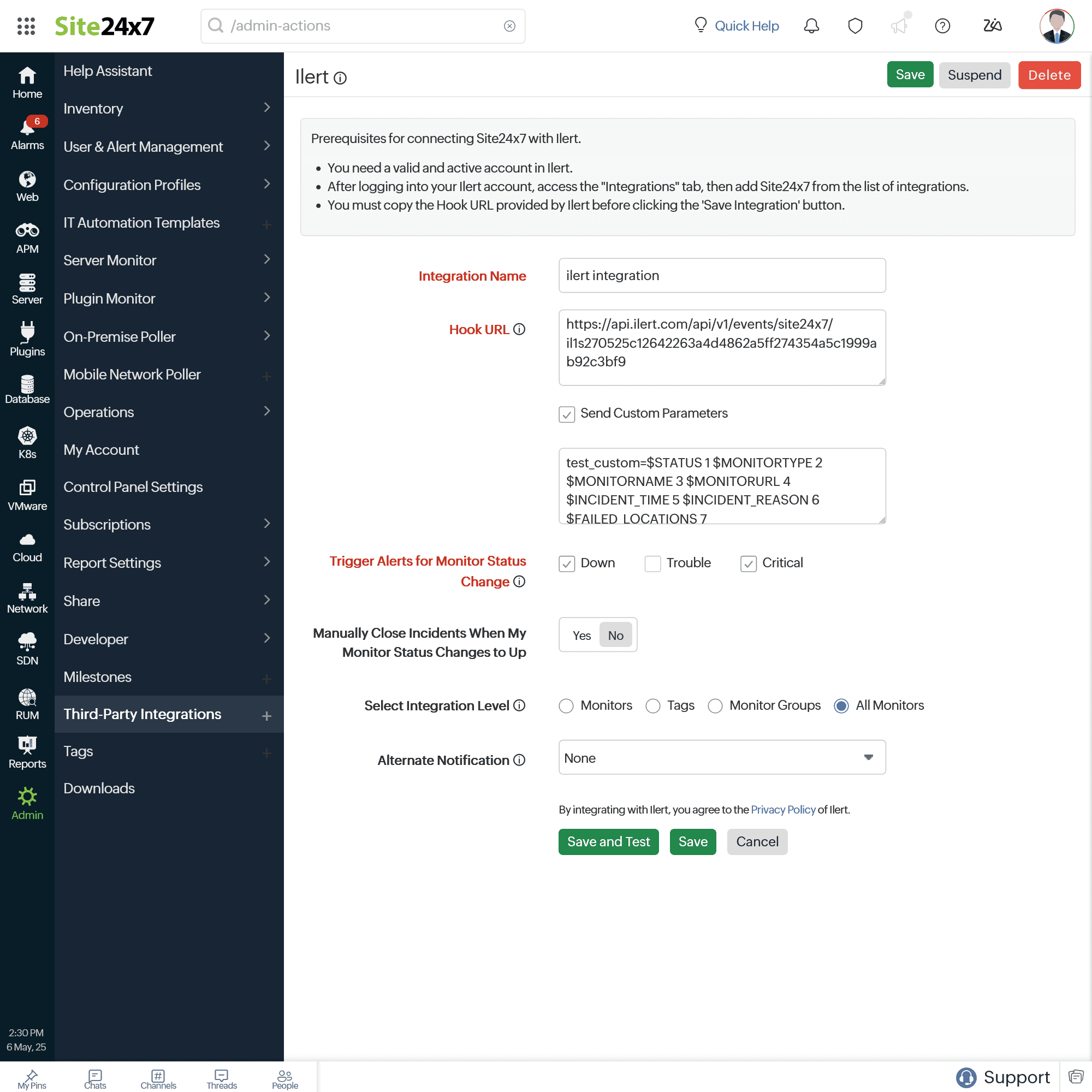This website explains the benefits of Site24x7 and ilert integration, and this help document will guide you through the integration process.