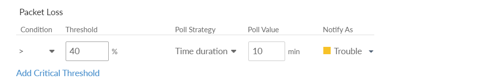When packet loss exceeds 40% for continuously ten minutes, Site24x7 will send a Trouble alert to the user.