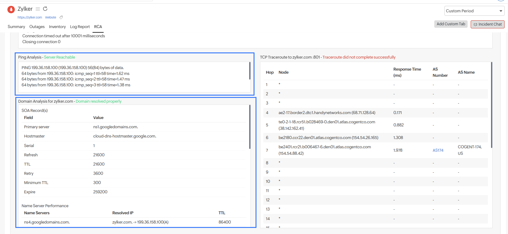 Imagine your e-commerce website is experiencing slow load times, leading to frustrated customers and lost sales. Using Site24x7's RCA, you can systematically investigate and resolve the issue.
