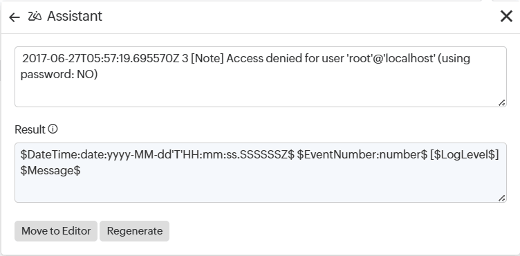 In AppLogs, you can use Ask Zia to instantly generate pattern for sample log data to parse configurations by following the steps below: